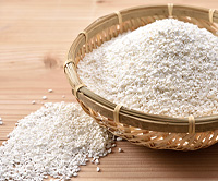| お米の形をした乾燥こんにゃく米です。お米に混ぜて炊くだけで、糖質49%、カロリー50%カットできます。 |
